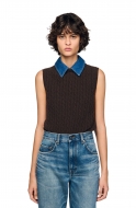 SANDRO Sleeveless cropped cable knit sweate…