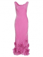 Saloni Asher Draped Floral Velvet Midi-Dress