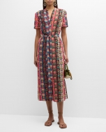 Saloni Stamped Silk Sleeveless Midi-Dress M…