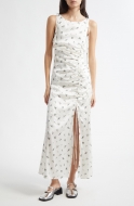 Ganni Printed Ruched Satin Maxi Dress_Egret