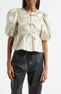 Ganni Metallic Jacquard Peplum Top_Gold/ Sil…