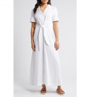 Caslon Vacation Tie Front Gauze Shirtdress_…