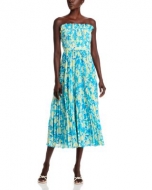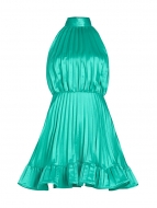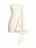 Amur Pleated Ruffle Satin Strapless Mini Dress