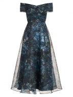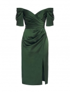 Theia Holland Satin Off-The-Shoulder Midi-Dr…