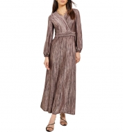 Misook Tie Neck Long Sleeve Pleated Maxi Dr…