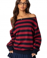 Edikted Womens Sterling Striped Off Shoulder Sweater