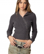 Edikted Womens Cropped Rib Knit Half Zip Sweater