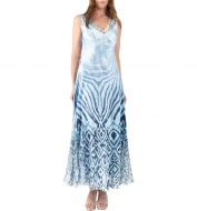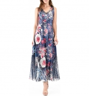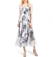 Komarov Lace-Up Back Charmeuse Maxi Dress_Watercolor Floral