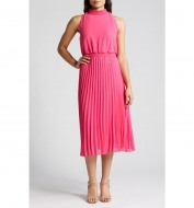 Sam Edelman Smocked Plisse Midi Dress_Hot Pink