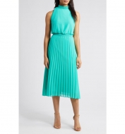 Sam Edelman Smocked Plisse Midi Dress_Turquoise