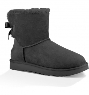 UGG Mini Bailey Bow II Genuine Shearling Bootie_Black Suede