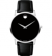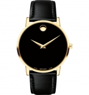 Movado Leather Strap Watch 40mm_Black/ Gold