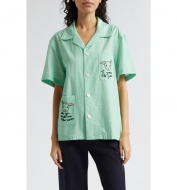 Bode See You at the Barn Embroidered Cotton Button-Up Shirt_White Green