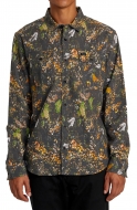 RVCA Leaf Print Cotton Flannel Button-Up Shirt_Real Tree