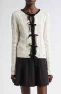 Ganni Tie Front Merino Wool & Cashmere Cable Sweater_Egret