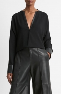 Vince Faux Leather Trim Dolman Sleeve Top_Black