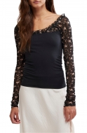Free People Josie Lace Long Sleeve Shirt_Black Combo