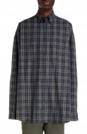 Balenciaga Check Oversize Cotton Flannel Button-Down Shirt_Navy/ Khaki