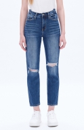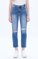 Bayeas Distressed High Waist Ankle Straight Leg Jeans_Medium Blue