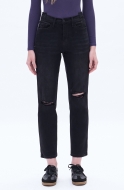 Bayeas Distressed High Waist Ankle Straight Leg Jeans_Black