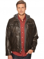 Mens Levis Faux-Leather Trucker with Jersey Hood and Fleece Lining