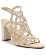 Arezzo Womens Brittany Embroidered High Block Heel Sandals