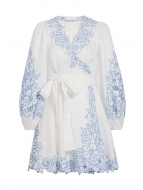 Zimmermann Golden Floral-Embroidered Wrap Minidress