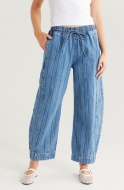 Damson Madder Felix Laser Stripe Barrel Leg Drawstring Jeans_Blue