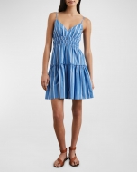 Tanya Taylor Reina Sleeveless Belted V-Neck Denim Mini Dress
