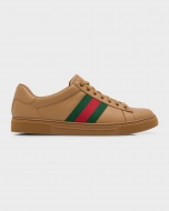 Gucci Mens Ace Leather Low-Top Sneakers with Web
