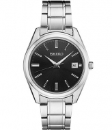 Seiko Mens Essential Quartz Analog Black Dial Stainless Steel Bracelet Watch