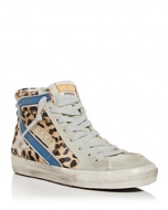 Golden Goose Womens Slide Leopard Print Calf Hair High Top Sneakers