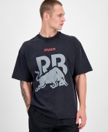 Hugo Boss Mens Washed Fanwear Oversized Short Sleeve Crewneck Bull Graphic T Shirt