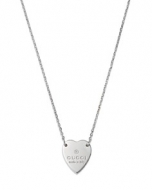 Gucci Sterling Silver Engraved Trademark Heart Necklace, 18