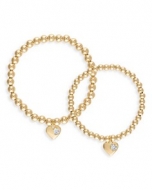 Alexa Leigh Mommy & Me Cubic Zirconia Heart Charm Beaded Stretch Bracelet in 14K Gold Fil…