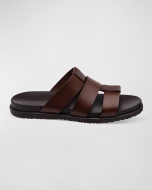 Bruno Magli Mens Empoli Three-Strap Leather Slide Sandals