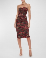 L Agence Floral Cheetah Caprice Ruched Strapless Midi Dress