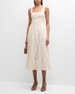 PAIGE Ophella Lace-Up Tiered Midi Dress