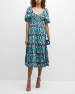 Atelier 17.56 Concordia Puff-Sleeve Abstract-Print Midi Dress
