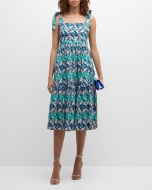Atelier 17.56 Gabriela Tiered Abstract-Print Midi Dress