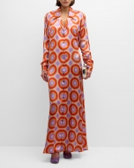 CHRISTOPHER JOHN ROGERS Groovy Dot Tie-Back Long-Sleeve Maxi Shirtdress