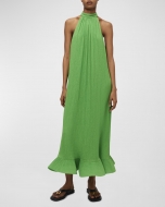 Tanya Taylor Kasia Floral Open-Back Halter Midi Dress