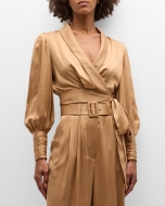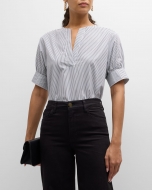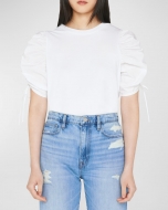 Derek Lam 10 Crosby Heather V-Neck Puff-Sleeve Top