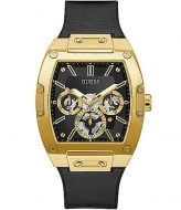 Guess Mens Black And Gold-Tone Square Multifunction Watch