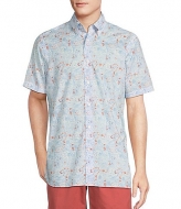Cremieux Blue Label Print Slub Poplin Print Short Sleeve Woven Shirt