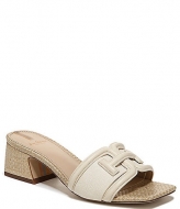 Sam Edelman Waylon Pebbled Leather and Raffia Double E Detail Slide Sandals