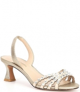 Pelle Moda Felice Shimmer Suede Rhinestone Embellished Slingback Dress Sandals