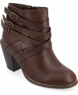 Journee Collection Womens Strap Wide Width Round Toe Stacked Heel Dress Booties