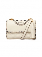 Tory Burch Fleming Tweed-Border Leather Convertible Shoulder Bag