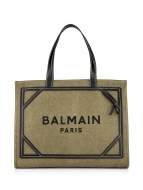 Balmain B-Army Medium Canvas Shopper Tote Bag KHAKI NOIR